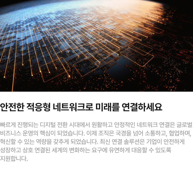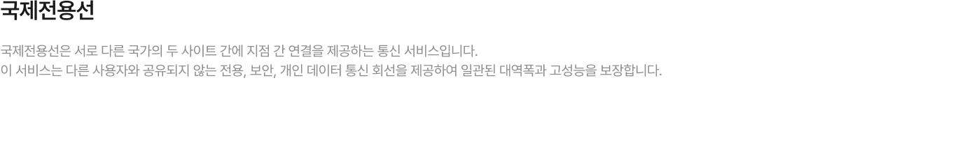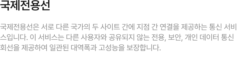 “GWS International은 다국적 기업의 비지니스를 지원하는 맞춤형 ICT 솔루션을 제공합니다. 원활한 네트워크 통합과 연결부터 안전한 SD-WAN 및 SASE 솔루션까지, 한국으로 진출하는 다국적 기업과 글로벌로 확장하는 한국 기업의 성공을 돕습니다. 인프라, NaaS, 그리고 엔드투엔드 ICT 서비스 분야에서 축적된 전문성을 바탕으로, 귀사 비지니스 성장과 안정성을 이끌어낼 수 있도록 최선을 다하겠습니다.”