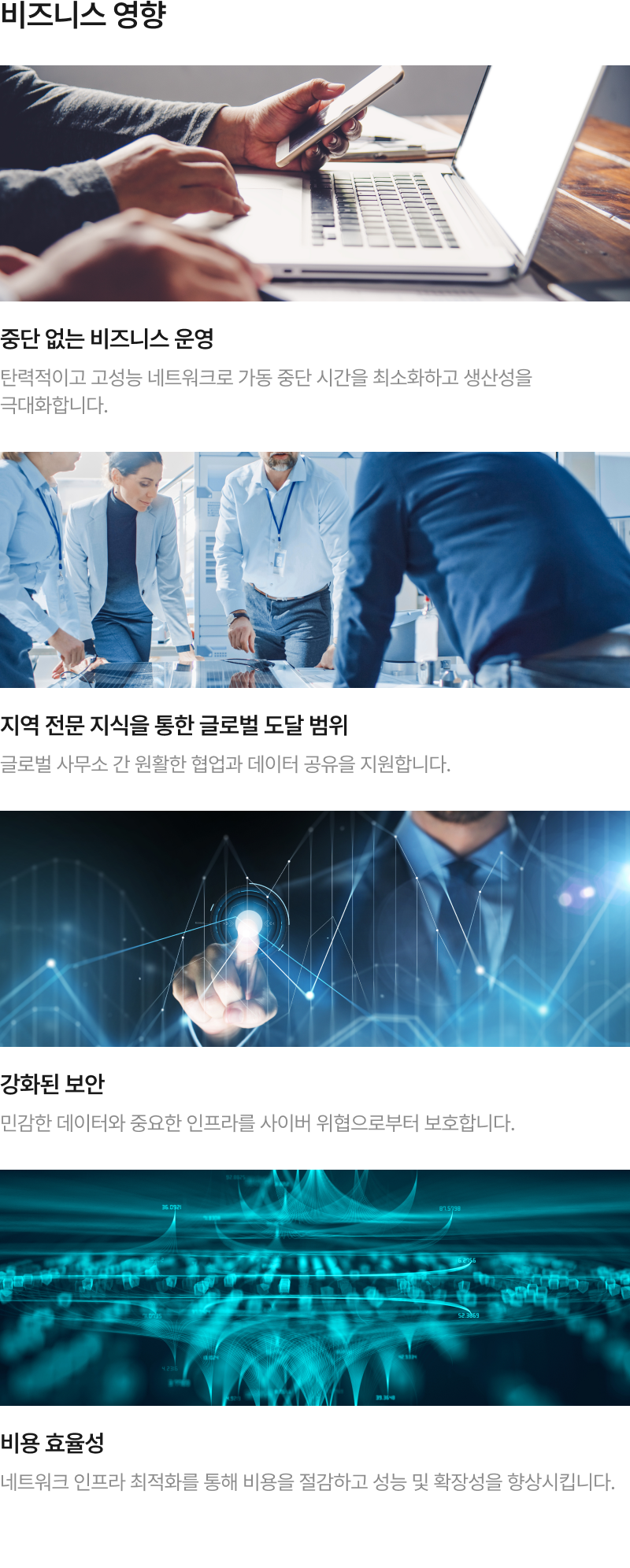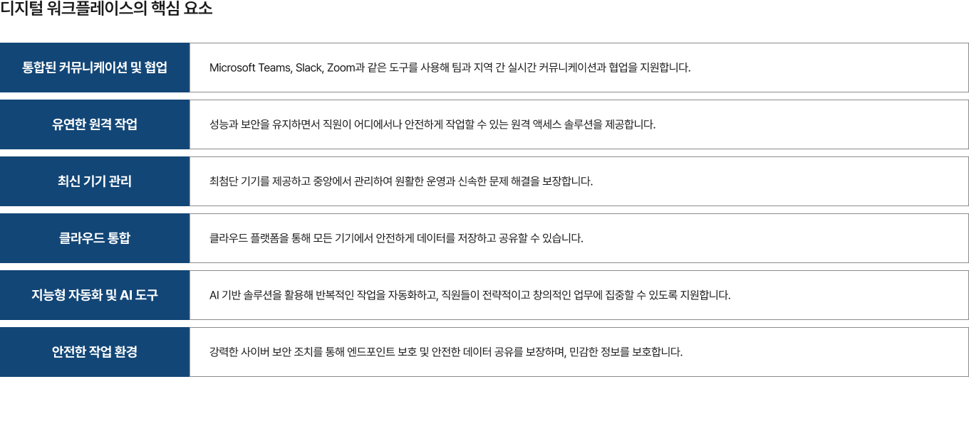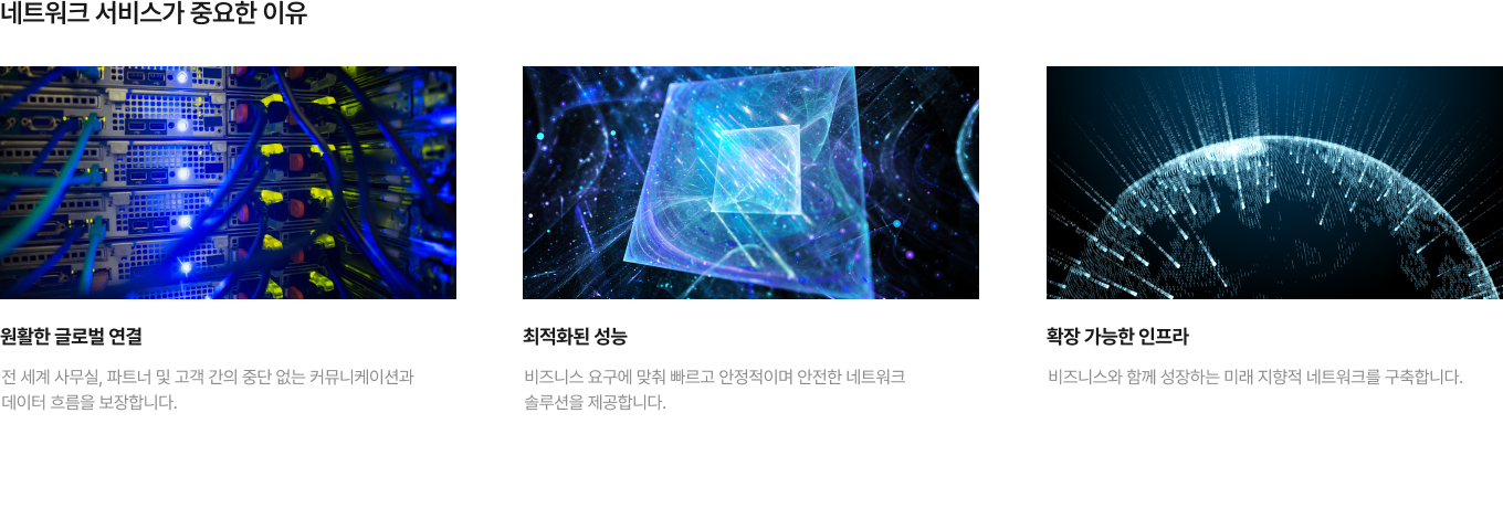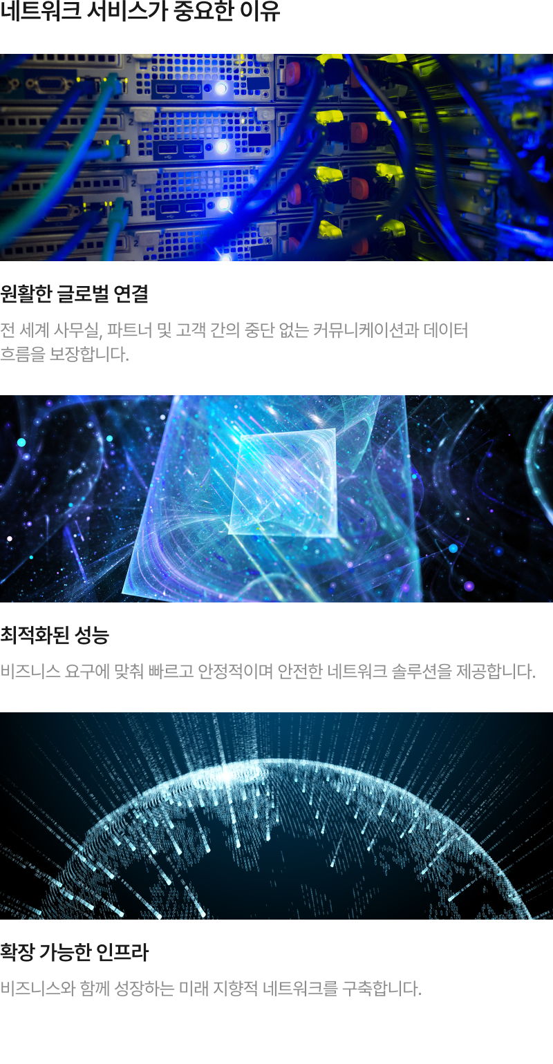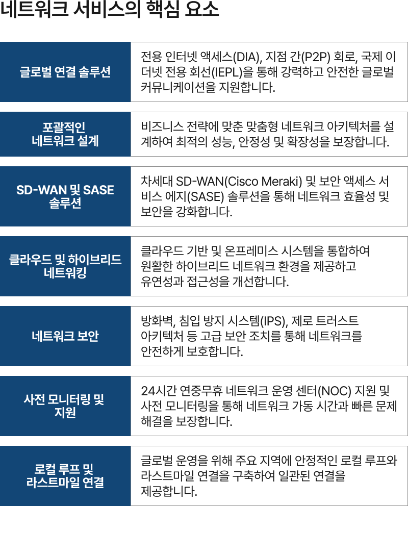 “GWS International은 다국적 기업의 비지니스를 지원하는 맞춤형 ICT 솔루션을 제공합니다. 원활한 네트워크 통합과 연결부터 안전한 SD-WAN 및 SASE 솔루션까지, 한국으로 진출하는 다국적 기업과 글로벌로 확장하는 한국 기업의 성공을 돕습니다. 인프라, NaaS, 그리고 엔드투엔드 ICT 서비스 분야에서 축적된 전문성을 바탕으로, 귀사 비지니스 성장과 안정성을 이끌어낼 수 있도록 최선을 다하겠습니다.”
